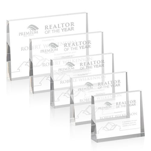 The Lansing Award is a thick freestanding acrylic award that tapers to the top and provides a large etch area to design an inspiring recognition piece. A good fit for the real estate industry! Available in Horizontal or Vertical, Deep Etch or VividPrint.
