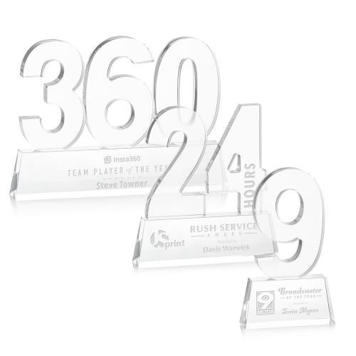 Recognize a monumental achievement with our exquisite Milestone award. These impressive acrylic awards are perfect for recognizing a personal or corporate achievement or a landmark event. A great way to honor a significant moment. Available with single, double or triple digits, these awards can recognize Milestones #0-999. Available with Laser Engraving or full-color VividPrint. Second, Third, and Fourth position laser engraving on numbers is optional.