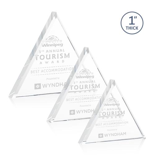 The brilliant **1" thick** freestanding Brighton Pyramid Acrylic Award features beveled edges that frame your inspiring words of recognition. This stunning award will illuminate any display case or office setting.