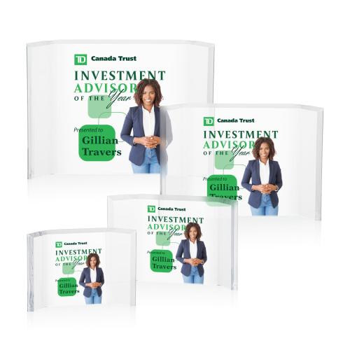 The freestanding Almer VividPrint Award beautifully frames your words of recognition with its curved side panels, focusing attention on your big achievement! An ideal award for the finance industry! Let your message POP! with full-color VividPrint. Also available with laser engraving!