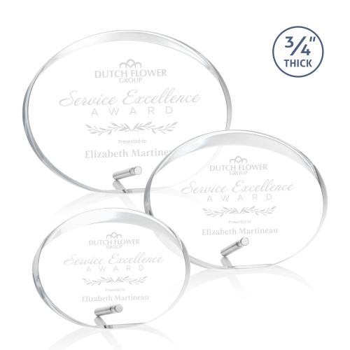 The acrylic Mosaic award is 3/4" thick and perched upright with a gold or silver metal pin. Beautifully beveled at the top to create a wonderful halo over your inspirational words of recognition.