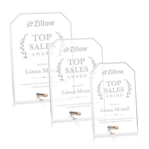 The Polaris Clipped Rectangle Award features a beveled acrylic tower with clipped edges and is held upright with a gold or silver easel pin. The Polaris series of awards are great budget-busting options for recognizing an exceptional employee or a corporate milestone.