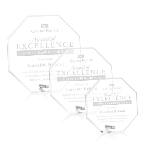 The Polaris Octagon Award features a beveled acrylic octagon, perched upright with a gold or silver easel pin. The Polaris series of awards are great budget-busting options for recognizing an exceptional employee or a corporate milestone.