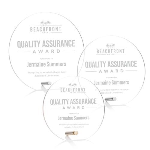 The Polaris Circle Award features a beveled acrylic circle with a clipped bottom that is held upright with a gold or silver easel pin. The Polaris series of awards are great budget-busting options for recognizing an exceptional employee or a corporate milestone.