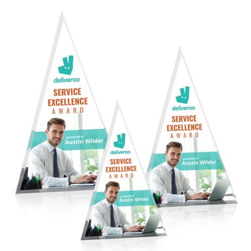 The Polaris Tower VividPrint Award features a beveled acrylic pyramid, perched upright with a gold or silver easel pin. The Polaris series of awards are great budget-busting options for recognizing an exceptional employee or a corporate milestone.