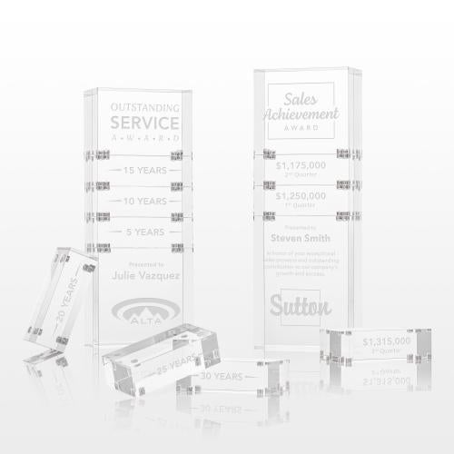 Elevate recognition to a new level with our Derringer Award. Its unique stackable design symbolizes growth, progress, and the potential for even greater heights. Perfect for years of service, sales achievements, or any landmark event! This Acrylic award includes 3 pieces: the bottom block, top block, and 1 stacking block. Additional blocks optional.
