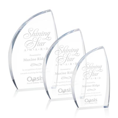 The Duncan Award features solid clear acrylic that reveals a curved shape that flows into a peak on the side of the award. The perfect vessel to show your appreciation for any sector and any occasion!