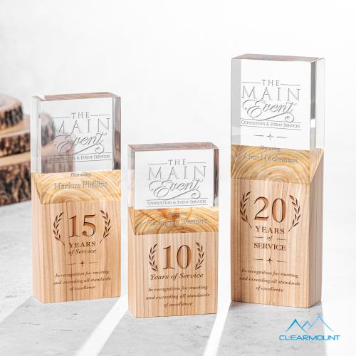 The Plante Award features a slanted wooden column block with an acrylic top. Great for recognizing Years of Service or any employee milestone.