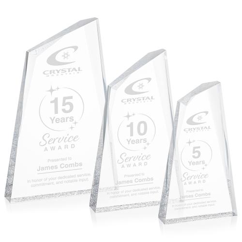 Celebrate achievement with this striking freestanding acrylic Cozumel Award, featuring a right-facing peak for a bold and modern look. The unique crackle design at the base reflects light beautifully throughout the piece, adding an eye-catching brilliance.