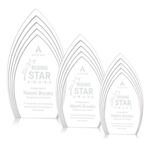 The Turello Acrylic Award is a sleek, freestanding recognition piece designed to make a bold statement. Its modern, layered silhouette features a vibrant color accent at the base that beautifully reflects upward, casting a subtle glow throughout the entire award. Available in gold, sapphire, and clear, the Turello delivers a premium, contemporary aesthetic perfect for honoring excellence at any level.