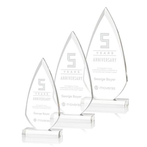 The bold arrowhead shape of the Vanderbilt Award is defined by deep rising bevels and is mounted on a front beveled acrylic base. A unique recognition piece to honor a special achievement and inspire greatness.