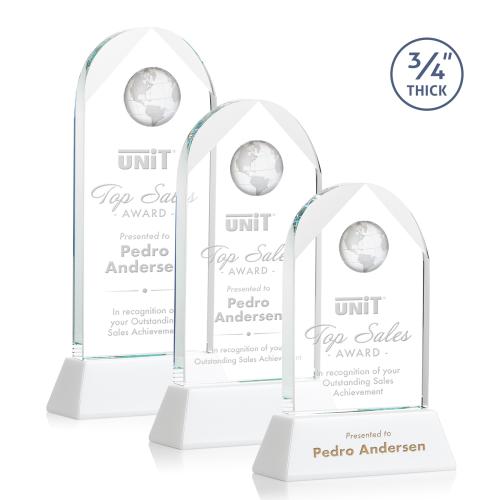 The Starfire Crystal Blake Globe Award features an elegant beveled arch with an Optical Crystal Globe mounted at the top. Includes a tall tapered Optical Crystal base in your choice of 9 distinct colors. A brilliant sparkling display for your achievement. Second Position Etch & Colorfill Optional.