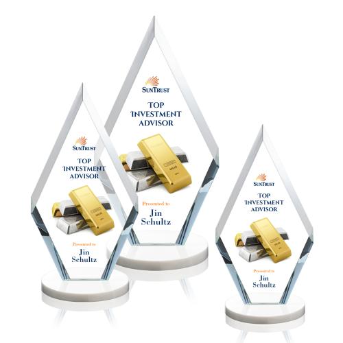 This simple yet elegant starfire diamond award features deep interchanging bevels and is mounted on a white starfire base.