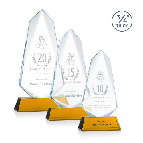 The Sheridan Award on Newhaven base features an exquisite 0.75" thick Starfire Crystal arrow with deep bevels that frame your prestigious accomplishment with sparkling light. Mounted on a tall tapered optical base in your choice of 9 distinct colors. Second Position Etch & Colorfill Optional.