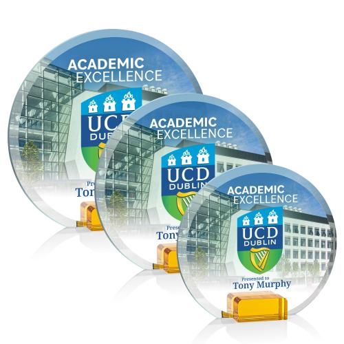 The beautifully beveled Bowie VividPrint Award in Starfire Crystal is perfect for recognizing an exceptional performance, a star employee or a momentous achievement. Accented and held upright with two panes of amber crystal to create a striking work of recognition.
