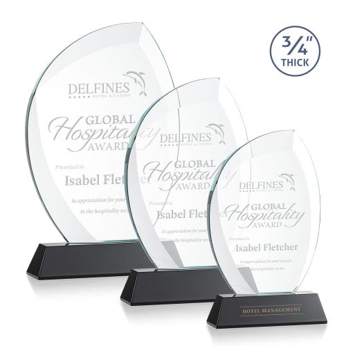 The Wichita Award features thick 3/4" Starfire Crystal with deep sweeping bevels that elegantly arch around your words of recognition with shimmering light. Mounted on a tall tapered Optic Crystal base in your choice of 9 distinct colors. A modern monument for any special achievement. Second Position Etch & Colorfill Optional.