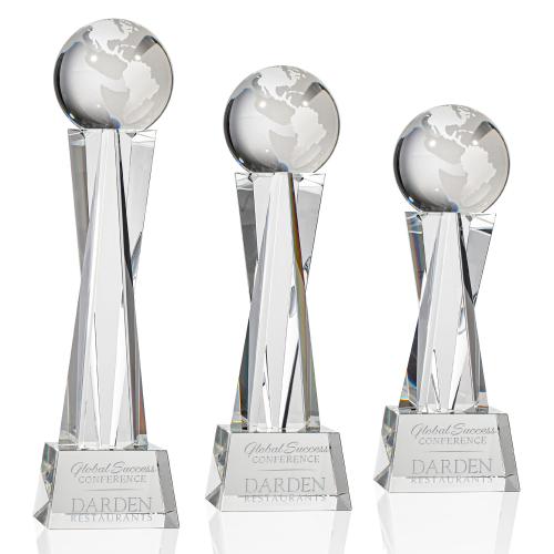 The Havant Globe Award is a mesmerizing Optical Crystal Trophy that will dazzle its recipient and proudly showcase their far-reaching achievement. Featuring an Optical Globe, perched atop a sparkling Crystal Pillar and mounted on a matching colored tapered base..