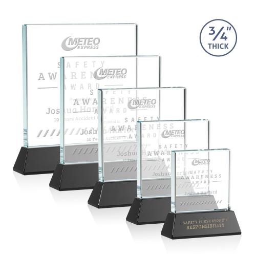 A solid pane of thick 0.75" Starfire Crystal is mounted on a tall tapered Starfire base in your choice of 8 distinct colors. A great choice for corporate recognition and a to honor an exceptional achievement. 2nd position etch and colorfill optional.