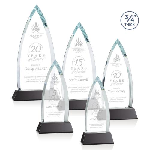 The striking Shildon Award is a 3/4" thick Starfire arrowhead with deep dramatic bevels to recognize a spectacular achievement. Mounted on a thick ebony crystal base. Second position etch optional.