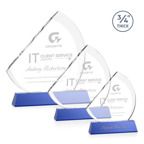 The contemporary Nantucket Award is made from thick 3/4" Starfire Crystal with contrasting deep bevels that rise to a flat edge. This striking work of recognition is mounted on a tall sapphire crystal base and is a magnificent award to honor a top performer. Second position etch optional.
