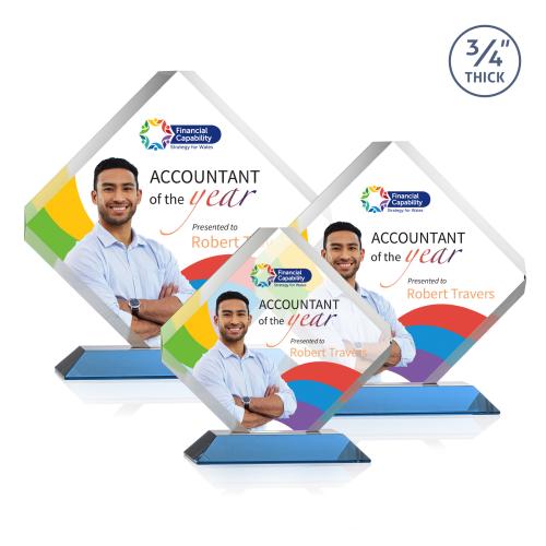 The majestic Toulon VividPrint award is a brilliant diamond-shaped award with a dramatic beveled frame and clipped edges. Ideal for recognizing an exceptional performer or commemorating a momentous milestone or event. Available on your choice of clear or colored mitered base.