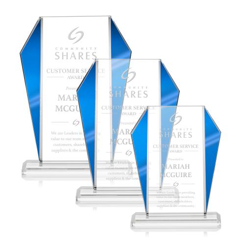 The Newbury Starfire Crystal Award features elegant Blue Metallic accents that frame your inspirational words of achievement. With matching reflective mirror accents on the back, this striking and contemporary award is perfect for recognizing an exceptional achievement.