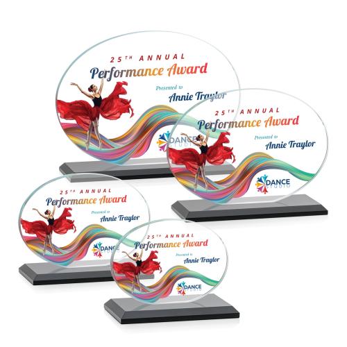 The Austin VividPrint Award features a 1/2" thick Starfire oval mounted on a glistening beveled base in your choice of 8 distinct colors. Featuring an ample etch area to include all of your personalizations and words of recognition. Available in horizontal or vertical.