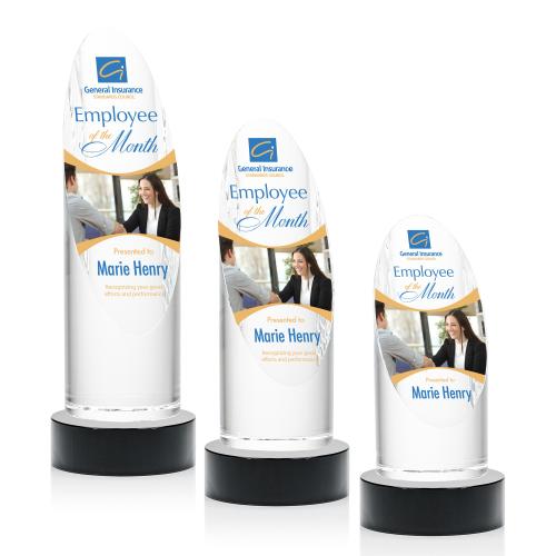 The Lauder Optical Crystal VividPrint Award is a grand gesture of appreciation. This marvelous award features an elongated oval shape on a cylindrical body mounted on a round ebony crystal base. The elongated oval on this award makes for ample space for printing. Let your message POP with full-color VividPrint! Second position etch and colorfill are optional. Packaged in a black satin-lined presentation gift box.