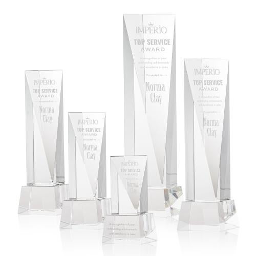 The Optical Crystal Easton Award is a grand gesture of appreciation. This extraordinary award features an elongated triangular face with ample space for deep etching your message. Mounted on an Optical Crystal square base. Second-position etch and colorfill are optional. Packaged in a black satin-lined presentation gift box.