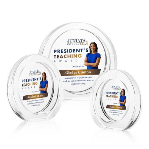 The Templeton VividPrint Award features a thick freestanding bottom that tapers to the top and a deep recessed center. Mounted on a clear or colored Newhaven Optical Crystal base, the Templeton award is a bold display of optical crystal achievement.