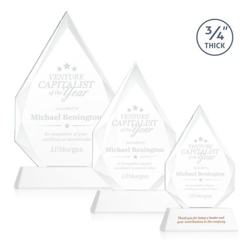 The classic Hawthorne 3/4" thick Starfire Crystal Award is the pinnacle of achievement recognition. Brilliantly beveled to highlight your message with interchanging facets that rise to a sparkling peak. Available on your choice of clear or colored tall tapered base. Second Position Etch & Colorfill optional.