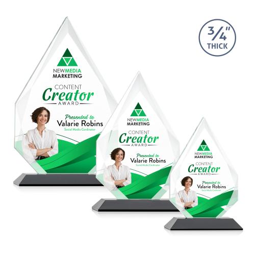 The classic Hawthorne 3/4" thick Starfire Crystal Award is the pinnacle of achievement recognition. Brilliantly beveled to highlight your message with interchanging facets that rise to a sparkling peak. Available on your choice of clear or colored base.