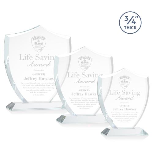 A shield signifies protection, authority, and stability, making the Scudo Shield Award suitable for recognizing outstanding excellence for first responders and law enforcement. This Starfire Crystal Award features beveled edges and is mounted on a mitered optical crystal base.