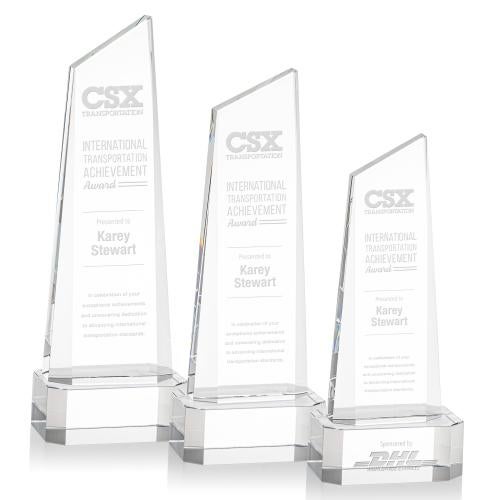 The thick Optical Crystal Belmont Tower Award features a slanted top and is accentuated by exquisite deep bevels. A unique recognition piece to honor a special achievement and inspire greatness. Mounted on your choice of sapphire, emerald, ebony or clear Optical Crystal base. Second position etch on base optional.