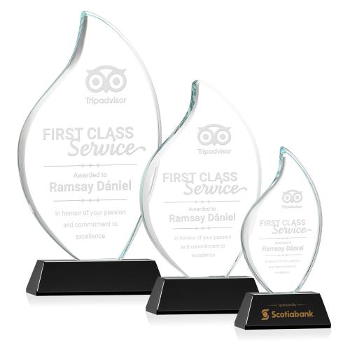 This classic award features a 3/4" thick Starfire Crystal Flame with rounded edges and mounted on your choice of clear or colored tall tapered Optical Crystal Newhaven Base. An elegant award to recognize a great achievement or momentous event. Packaged in a black satin-lined presentation gift box. Second position etch and colorfill optional.