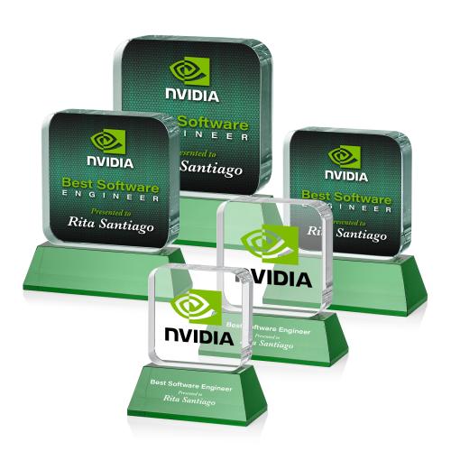 Flamborough Full Color Green on Base Square / Cube Crystal Award