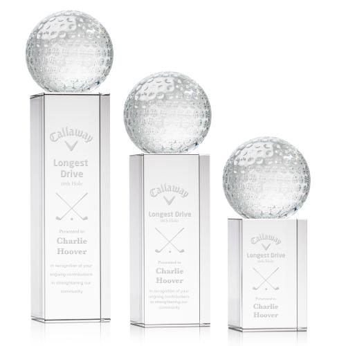 Our exquisite Optical Crystal Golf Ball Award is a timeless tribute to the passion and skill of golfers. The centerpiece of this masterpiece is a flawlessly crafted Optical Crystal Golf Ball that captures and refracts light in a mesmerizing display. Mounted on a complimenting Optical base for personalization with a Logo or Name. This stunning piece of artistry embodies precision and elegance, making it the perfect award or keepsake for golf enthusiasts, tournaments, or special occasions.