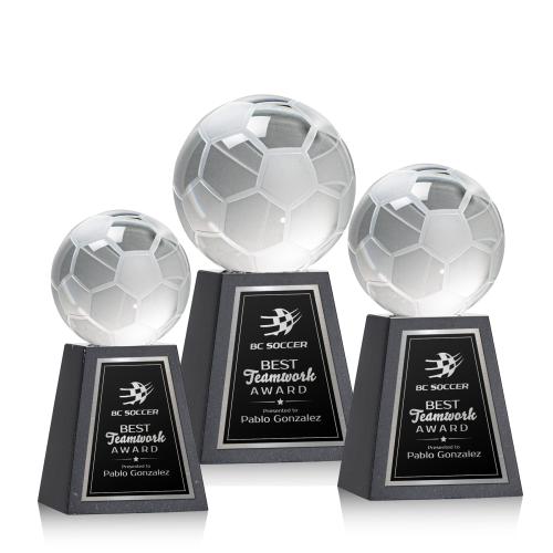Soccer Ball Globe on Tall Marble Base Crystal Award