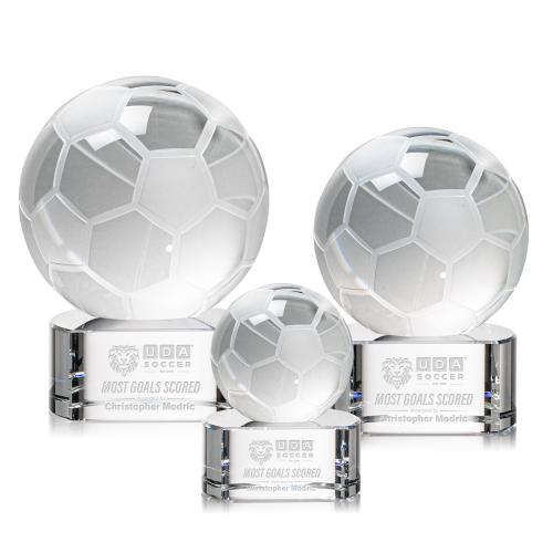 The Soccer Ball Award is a stunning representation of the passion and skill inherent in the beautiful game of soccer. At the heart of this masterpiece is a flawlessly rendered Optical Crystal Soccer Ball that captures and refracts light in a captivating display, evoking a sense of accomplishment and excellence. Mounted on a complimenting Optical base for personalization with a Logo or Name. An exceptional award, gift, or keepsake for soccer enthusiasts, tournaments, or special occasions.