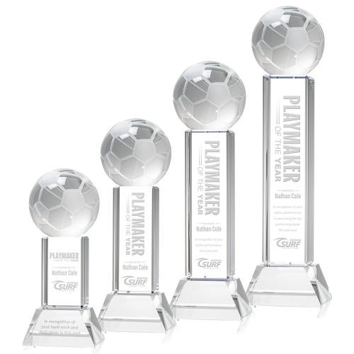 Soccer Ball Clear on Stowe Base Globe Crystal Award