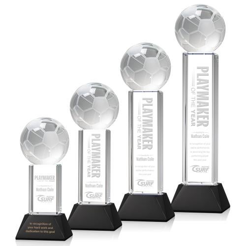 Soccer Ball Black on Stowe Base Globe Crystal Award
