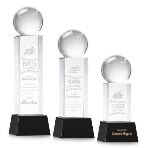 Baseball Black on Belcroft Base Globe Crystal Award