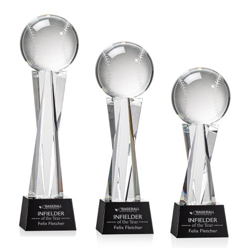 Baseball Black on Grafton Base Globe Crystal Award