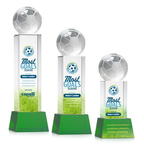 Soccer Ball Full Color Green on Belcroft Globe Crystal Award