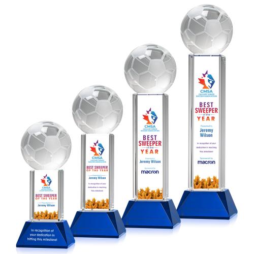 Soccer Ball Full Color Blue on Stowe Globe Crystal Award