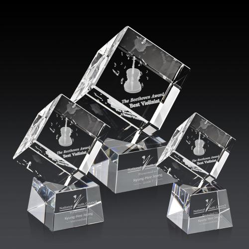 A perfectly polished 3 Dimensional cube made from the purest Optical Crystal. Features a subtle single beveled edge all around. Let this recognition piece shine as an award, paperweight or momento for your desk or shelf. Complete with your choice of Clear, Ebony, Sapphire, or Emerald tapered Optical Crystal base.