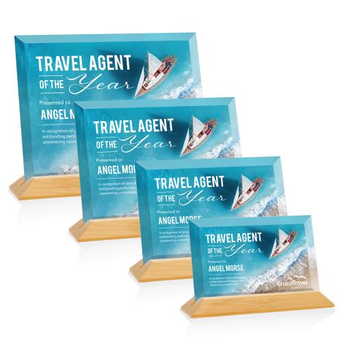 The prestigious Starfire Crystal Embassy VividPrint Award reflects timeless beauty with its deeply beveled edges. Available in four stunning base options: High Polish Piano Finished Rosewood, polished Black, Bamboo, or Walnut. Available horizontal or vertical.