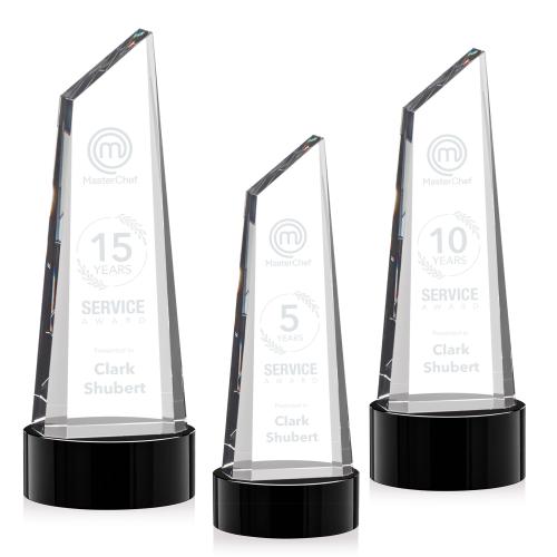 Stunning trapezoidal tower award is anchored with a thick optical crystal bottom that tapers to a peak. Mounted on your choice of Clear, Emerald, Ebony, or Sapphire Optical Crystal base. Experience a new glimmer of radiant light at each angle of this exquisite crystal award.
