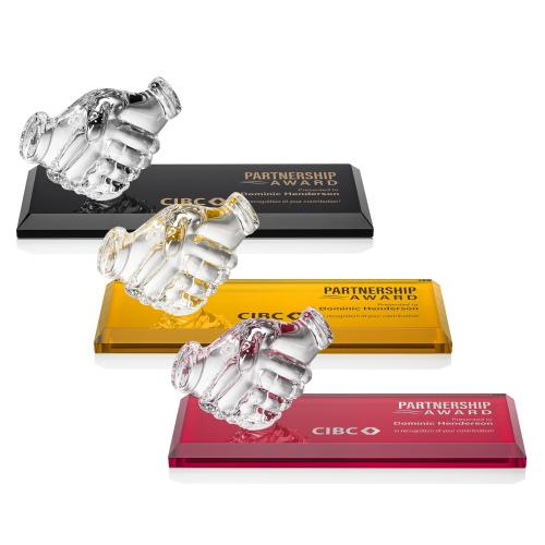 Celebrate teamwork, partnership, and shared success with our striking Northam Shaking Hands Award featuring an Optical Crystal shaking hands symbol. Whether recognizing outstanding business alliances, commemorating milestone achievements, or honoring exceptional teamwork, this award serves as a timeless reminder of the power of collaboration. Mounted on your choice of 10 different bases.