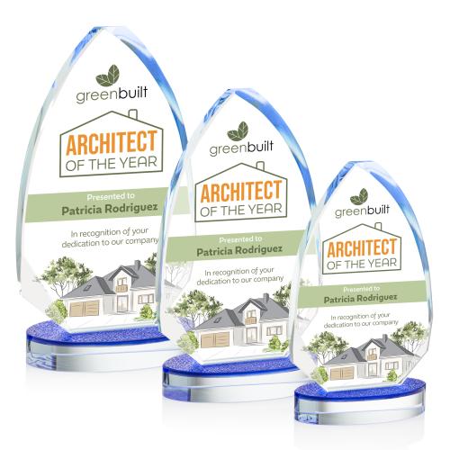 The Stanmore VividPrint Award features an arrowhead-shaped Starfire Crystal with beveled edges, a symbol of precision, direction, and remarkable accomplishment. Mounted on an oval base with a unique textured sapphire top crafted to catch and refract light, creating a mesmerizing play of brilliance. Take your artwork to new heights with full-color VividPrint.